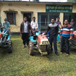 খামার যান্ত্রিকীকরন প্রকল্পের অাওতায় পাওয়ার টিলার ও সিডার বিতরণ।